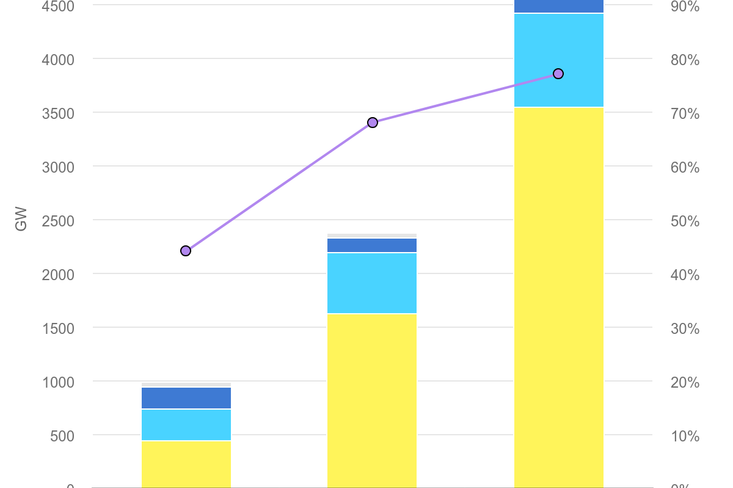 Přesto se nejedná o tak rychlý růst, jak předpokládala loňská zpráva, výhled je nyní o pět procent horší. Agentura uvádí, že více než 80 procent států světa nyní plánuje rychlejší rozšiřování obnovitelných zdrojů, než tomu bylo v předchozích pěti letech. V Evropě je hnací silou záměrný přechod na domácí zdroje energie a snaha o energetickou nezávislost, v Asii prudce roste instalace solárních panelů a bateriových úložišť kvůli nedostatku obnovitelných zdrojů a rychlé elektrifikaci.
