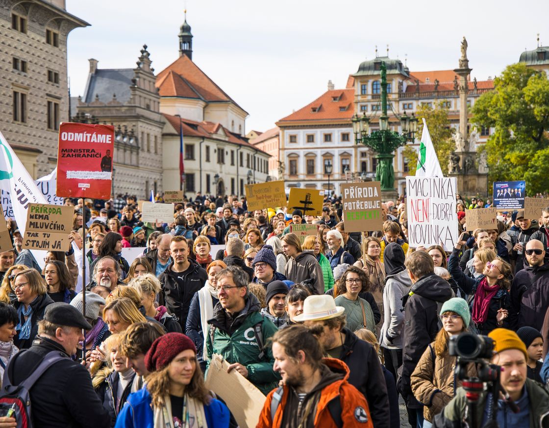 Tisíce lidí zaplnily v neděli Hradčanské náměstí v Praze, aby vyjádřily nesouhlas s možným jmenováním Petra Macinky, předsedy hnutí Motoristé sobě, do čela Ministerstva životního prostředí. Demonstrace pořádaná před okny prezidenta Pavla spojila ekologické organizace, právní odborníky i zástupce veřejnosti, kteří varovali před návratem fosilních zájmů do čela resortu.