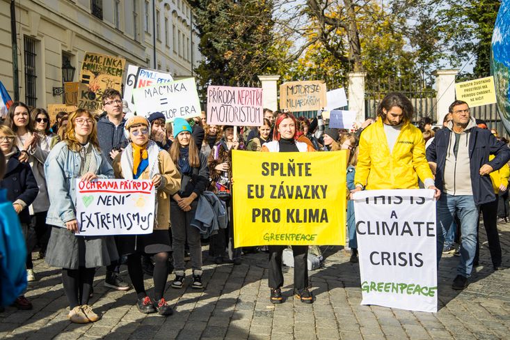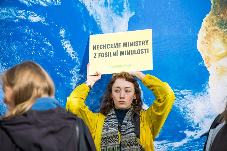 Demonstrace na Hradčanském náměstí, kterou uspořádaly různorodé ekologické organizace včetně Greenpeace ČR a Hnutí Duha, upozornila na riziko, že by se vedení resortu mohlo dostat do rukou člověka dlouhodobě spojeného s popíráním klimatické krize a s fosilním byznysem.