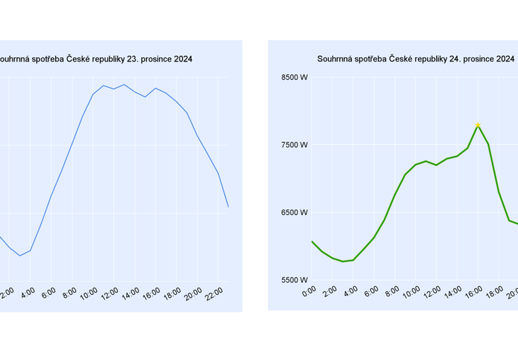 Štědrému dni se nic nevyrovná, a to ani ve spotřebě elektřiny. Zatímco průmysloví „žrouti“ spí, domácnosti kreslí ve spotřebním grafu ostře špičatý vánoční stromeček. Pro jednotlivé domácnosti je však spotřeba přesto minimální. Zapnutá světýlka nestojí ani korunu denně, příprava štědrovečerní večeře vyjde na několik desetikorun.