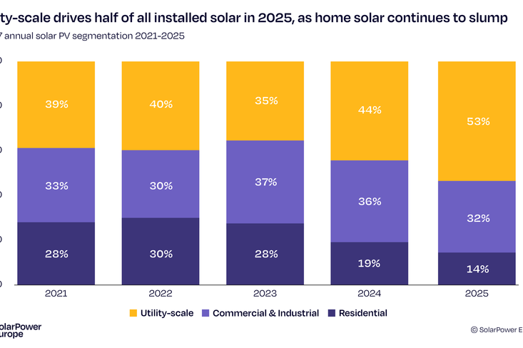 Největší propad zasáhl střešní instalace, především u domácností. „Segment střešních instalací se výrazně propadl, a to navzdory tomu, že spotřebitelé stále čelí vysokým maloobchodním cenám plynu a elektřiny, protože podpůrné programy byly postupně ukončovány. Velké pozemní elektrárny sice nadále výrazně rostly a v roce 2025 představovaly více než polovinu všech nových instalací, ani to však nedokázalo vyrovnat oslabení rezidenčního trhu,“ dodávají analytici.