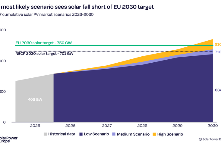 Výhled na další roky je tak dle zprávy spíše negativní. Podle středního scénáře budou instalace klesat i v letech 2026 a 2027, k mírnému oživení má dojít až ke konci dekády. Odhad instalovaného výkonu pro rok 2030 byl během jediného roku snížen o 12 procent, tedy zhruba o 100 gigawattů. Evropská unie by tak při současném vývoji dosáhla pouze 718 gigawattů, pesimistický scénář počítá dokonce se 664 gigawatty. Cílových 750 gigawattů by bylo možné naplnit jen v optimistickém scénáři.