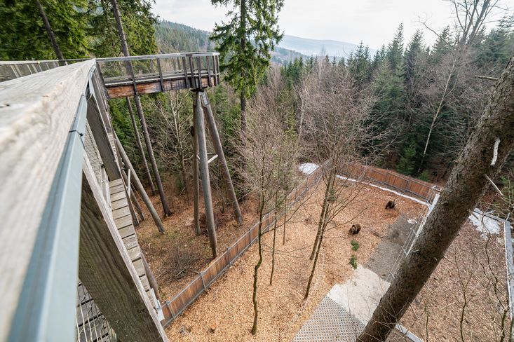 V Krkonoších mohou návštěvníci pozorovat medvědy v prostředí, které odpovídá jejich přirozenému způsobu života. „Jsou to divoká zvířata a mají svůj rytmus. Občas se může stát, že se někde schovají nebo odpočívají. Pro návštěvníky máme pro tyto případy připravený doprovodný informačně-vzdělávací program plný zajímavostí o těchto majestátních zvířatech,“ řekl Miroslav Matas, ředitel Stezky korunami stromů Krkonoše.