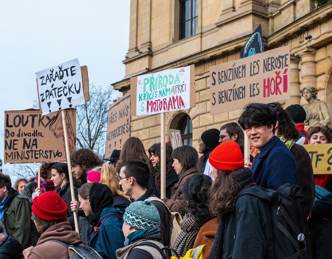 Fotoreportáž: Studenti naplnili ulice, demonstrovali proti Motoristům na životním prostředí